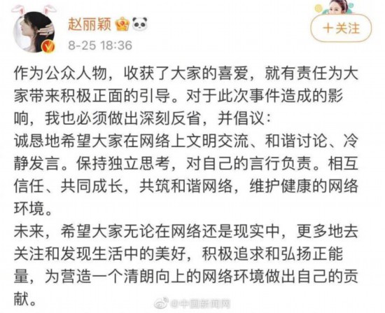 就在几天前,艺人赵丽颖的粉丝在其新剧未有官方明确消息的情况下拉踩引战。相关平台对包括其工作室账号在内等多个账号禁言。8月25日,赵丽颖通过社交媒体称,对此作出深刻反省。