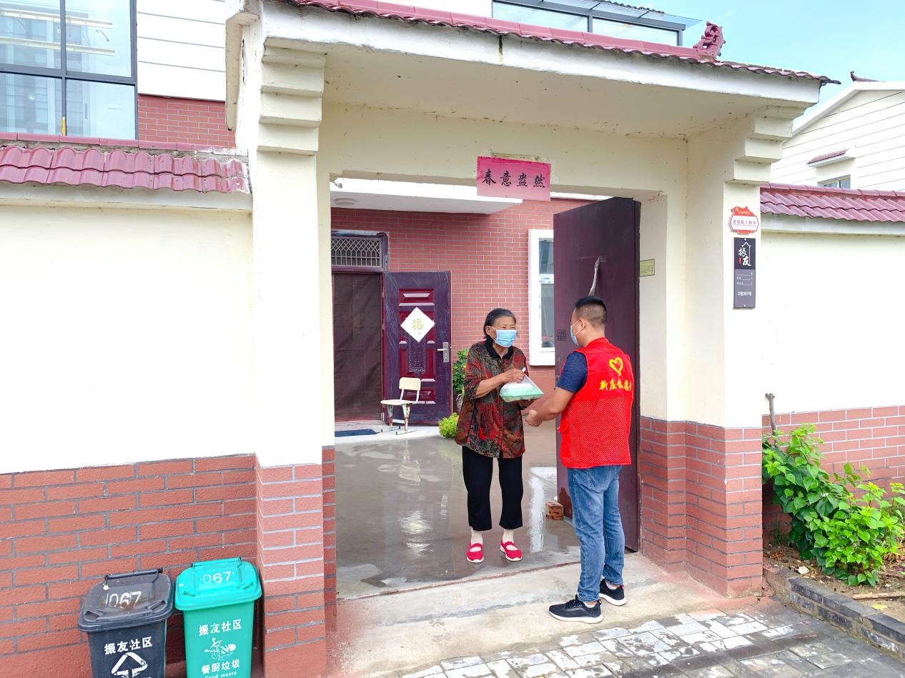 “振兴有我”志愿服务队志愿者为老人送餐上门 张旭摄