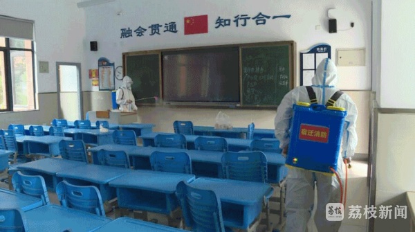 开学在即,宿迁市宿豫区泰山路消防救援站的消防员走进校园进行防疫消杀,助力学生安全开学。