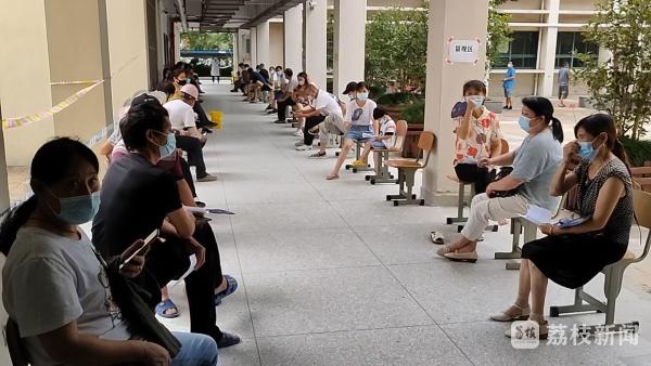 今天(28号)上午记者来到禄口铜山中学临时接种点。现场排队的人不多,工作人员和志愿者已经提前按照一米线的距离,为居民准备了凳子和小扇子。接种居民表示:他们是接到社区的通知,让他们直接去领单子,到铜山中学来排队,非常方便,就是一路畅通的感觉。