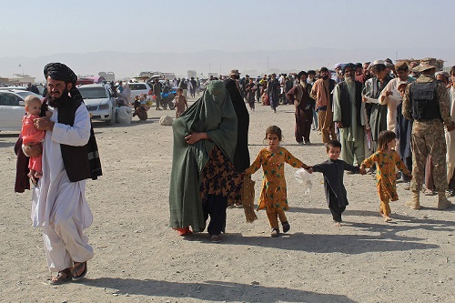 △当地时间2021年8月20日,巴基斯坦查曼,阿富汗民众穿过巴基斯坦-阿富汗边境检查站 图自视觉中国