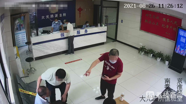 8月26号中午11点多,一位60岁左右的女士搀扶着一名80多岁的老人来到南京大光路派出所寻求帮助。她说这名老人是走失老人,想请民警帮忙找到他的家人。而她碰到这位老人的过程也极为巧合。
