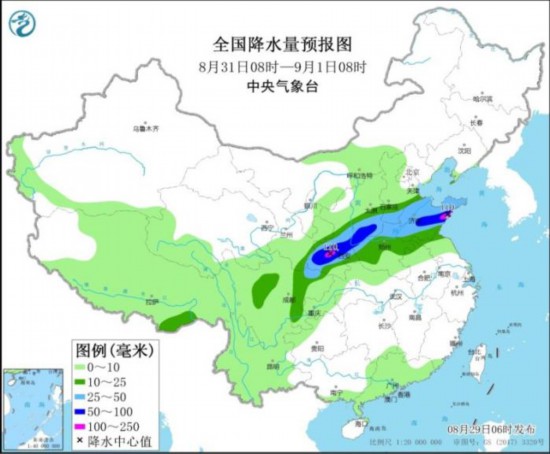 全国降水量预报图(8月29日8时-30日8时)
