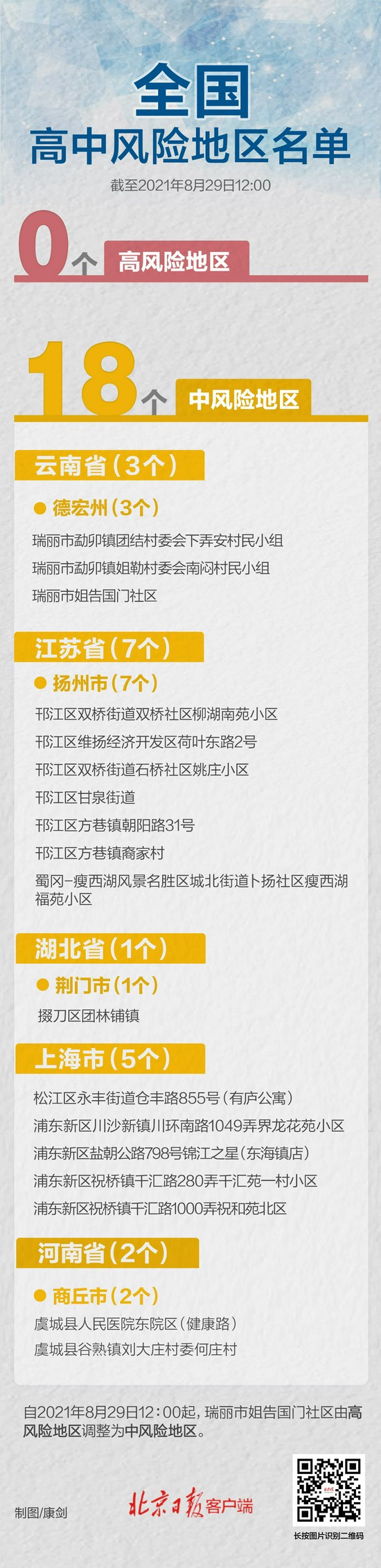 全国高风险地区由此“清零”,中风险地区还有18个。