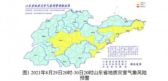 8月29日,山东省自然资源厅、山东省应急管理厅、山东省气象局三部门联合发布地质灾害气象风险预警:受副高边缘切变线影响,山东将有持续性降雨过程,根据未来24小时降雨预报及前期实际降雨量分析,济南南部、淄博南部、泰安大部、济宁东部、潍坊西南部、日照南部、威海、烟台南部、青岛北部及南部沿海降雨引发地质灾害的可能性较大(黄色预警),请当地政府及相关单位做好地质灾害防范工作。