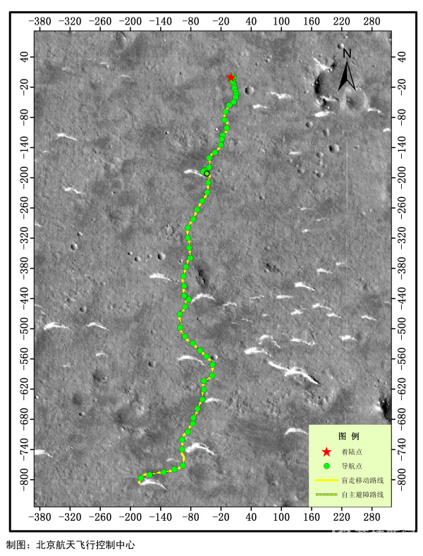 截至8月30日,火星车在着陆点以南方向累计行驶1064米。目前,火星车状态良好、能源充足,将继续按照“七日一周期,一日一规划,每日有探测”的高效探测模式,向南部的古海陆交界地带行驶,以获取更丰富的科学探测数据。环绕器在轨运行403天,距地球约3.92亿千米,于8月24日使用高分辨率相机对着陆区域成像,获取了1米分辨率影像,图像中火星车行驶轨迹清晰。
