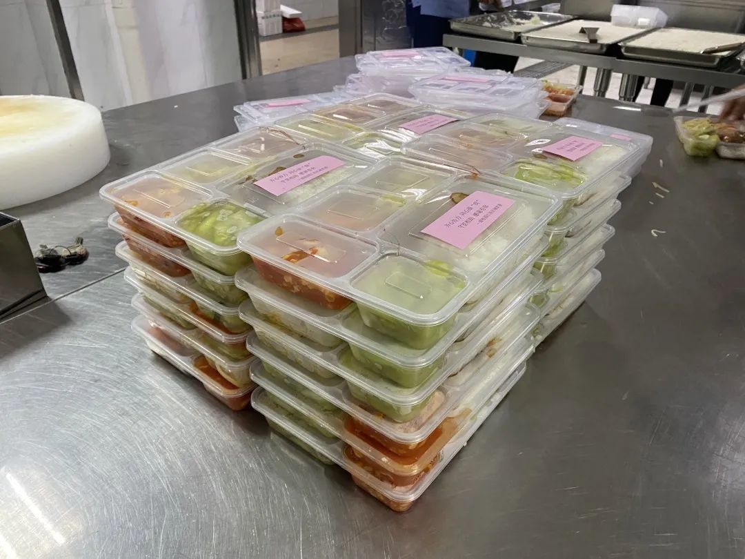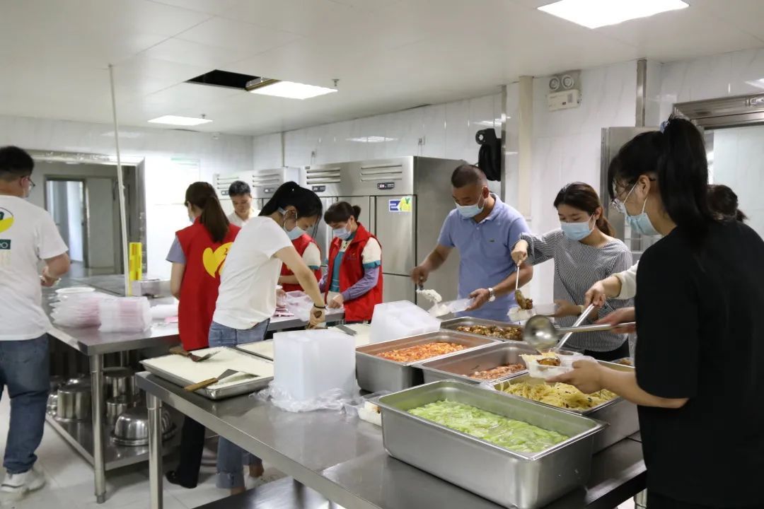 同时,为了支持坚守在一线的防疫人员,碧桂园江苏区域党委和公司食堂工作人员一起打包了200份爱心餐盒送到一线,让他们及时吃上了热腾腾的饭菜。