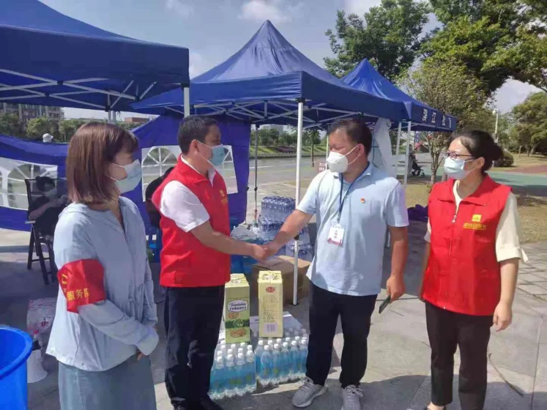 同日,碧桂园仪征项目积极响应号召,由5位员工组成的党员志愿服务队分别为滨江社区和冷红村社区防疫工作人员送上八箱矿泉水和四箱饼干等食品物资,感谢一线防疫工作人员及志愿者的辛苦付出!