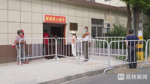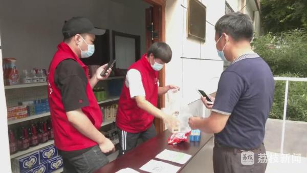 新城爱心超市位于扬州山河村村委会北侧,昨天(8月29日)上午九点半,不少村民正有序排队购买商品。记者看到,超市货架上的商品虽然不如大超市多,但“油盐酱醋米”一应俱全。
