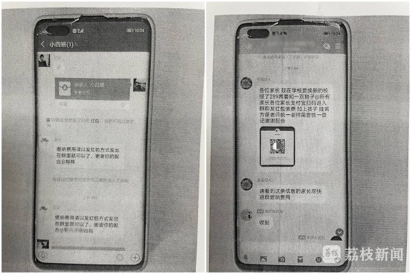 当日早上7时44分许,群里面收到一条自称系“刘老师”的消息:“各位家长,现在学校要换新的校服,289元两套衣服和一双鞋子,各位家长支付宝扫码进入群聊发红包缴费,并备注孩子姓名方便老师统一登记,谢谢配合。”紧接着,又发了一个群聊二维码。