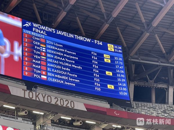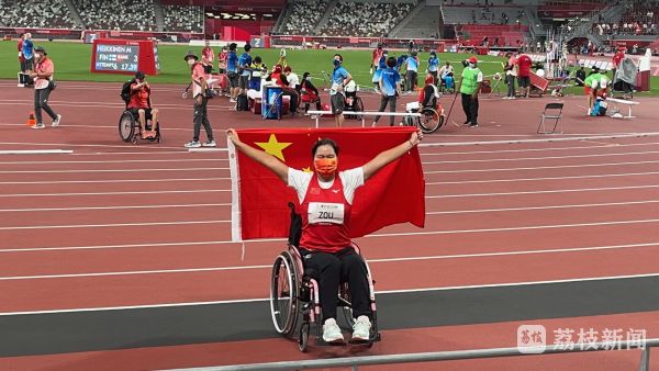 昨天(8月29日)晚上,江苏籍选手邹莉娟在东京残奥会田径女子F34标枪决赛中亮相,以22米28的成绩成功卫冕,并平了她自己保持的世界纪录,同时也创造了新的残奥会纪录。