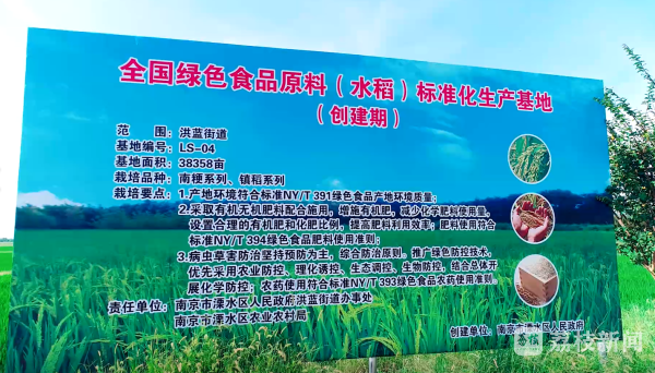 2019年12月,溧水区向农业农村部的中国绿色发展中心申请了全国绿色食品原料(水稻)标准化生产基地,申请面积为15.02万亩,分布在全区6个镇街。南京市溧水区农业农村局农产品质量安全监管科科长袁丹丹介绍,创建期间,基地对于农药和肥料等投入品都有明确的规定和标准,比如农药必须要使用绿色食品标准名录里的农药,有机肥提供的氮要占整个肥料总氮含量的50%,等等。