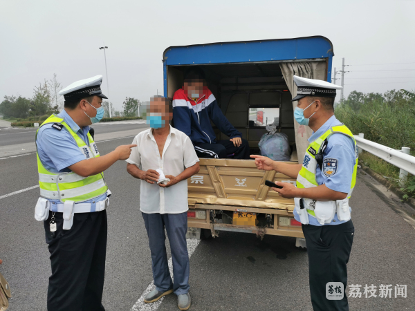 8月31日6时45分,徐州沛县交警大队滨湖中队民警带领辅警在徐沛快速路47公里处值勤时,发现一辆由南往北的三轮车,经现场检查,驾驶员张某驾驶的三轮载货摩托车,存在车辆逾期未审验、并且交强险也已经逾期,车厢内还载着其儿子。