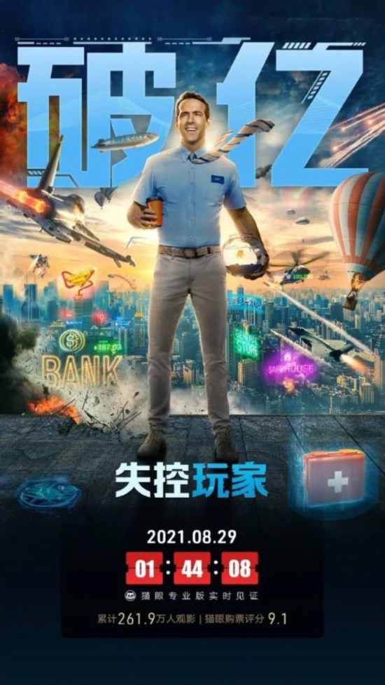 【环球时报综合报道】由瑞安·雷诺兹主演的幻想喜剧片《失控玩家》于8月27日登陆中国内地院线,首周末三日票房总计1.55亿元人民币,稳居榜首。