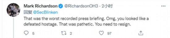 对于布林肯连续推特表态,一些网友反应并不积极。