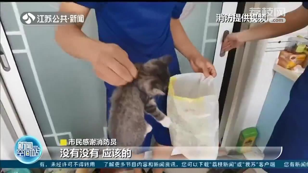 8月25日上午,连云港市连云区一位居民向消防员求助称,有一只小猫从楼上掉到他们家中的厨房管道里。消防员利用电钻和打磨机小范围地从下水道侧后方对墙壁进行开凿,然后通过开凿的小洞设法将猫救出。