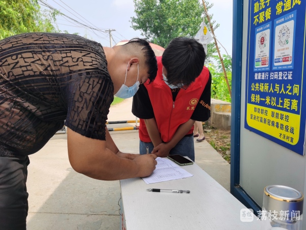 在徐州市贾汪区茱萸山街道才沃村疫情防控值守点,一位穿红马甲的“00”后正为进出的居民测量体温和登记个人信息,从这一串熟练的动作看得出他对防疫值守工作已相当熟悉了。