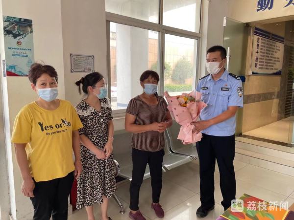 片刻的寒暄后,由于当天时间太晚,姐妹俩约好第二天在泰州医药药城见面,张女士对民警连连感谢,本以为事情就此结束,没想到第二天,张女士和妹妹带着一束花来到了派出所,对民警再次表示感谢。