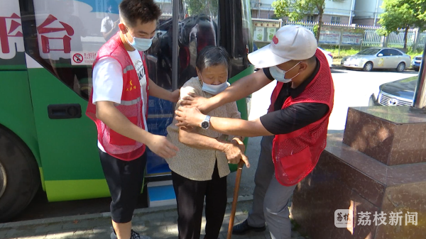 在现场,除了登记的医生、接种的护士,社区多名志愿者和网格员也在不停忙碌,有人维持秩序,有人上门接送腿脚不便的老人,还有人在接种车出入口,搀扶老人上下台阶。