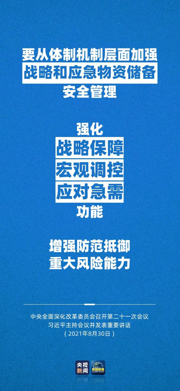会议指出,党的十八大以来,国家储备基础和实力不断增强,在防范化解重大风险、有效应对新冠肺炎疫情中发挥了重要作用。我国是大国,必须具备同大国地位相符的国家储备实力和应急能力。