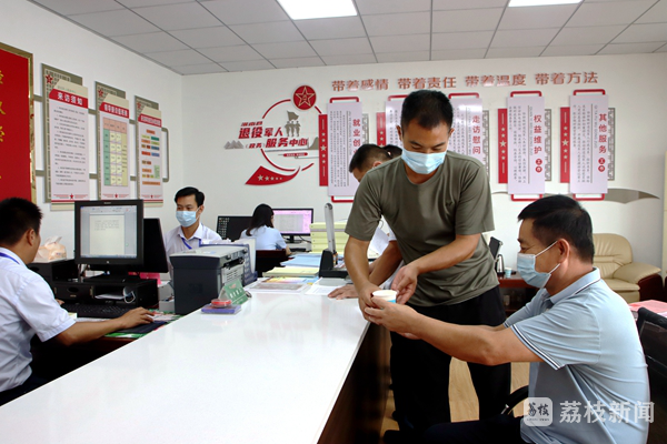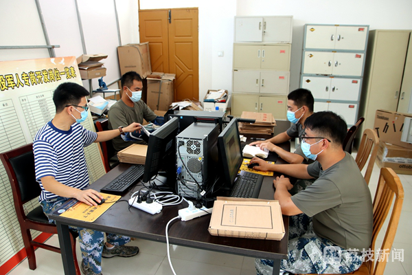 在档案室,三名退役军人在档案管理人员指导下,井井有条地将档案原件扫描为电子档,录入个人信息,同时按照档案规范管理要求,装订纸质档案,按编号归位上架。由于经历过部队大熔炉的淬炼,三名退役军人将工作做得有板有眼,很快进入角色。