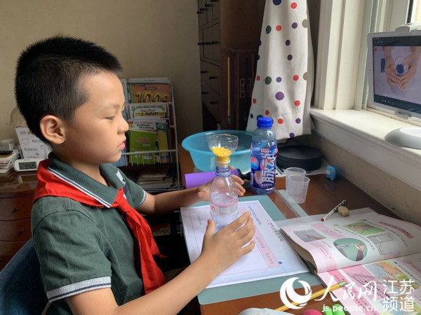 五老村小学三九班学生王梓澄在家上起了科学课。校方供图