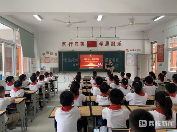 贾汪区团结小学三(1)班教室内不时传出学生们清脆嘹亮的歌声,班主任正在开展以“请党放心 强国有我”为主题的党史学习教育,让学生们了解中国共产党的百年奋斗征程和各个时期涌现出的英雄人物,教育学生从小学党史,永远跟党走。