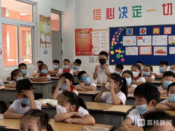 贾汪区团结小学德育主任刘艳说,在开学前一天,学校组织了全体学生观看江苏省2021年秋以“请党放心、强国有我”为主题的视频,让孩子们学习做一个有担当的人,赓续我们的红色血脉。今天上午,全校所有班级开展“开学第一课”,以老师现场讲解、观看爱国教育视频、合唱爱国歌曲、师生互动、做手抄报等形式,让孩子们牢牢记住“没有共产党就没有新中国”,永远跟党走,为中华民族伟大复兴的中国梦贡献自己的力量。