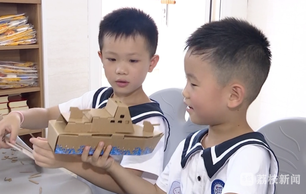 在常州市河海实验学校,一年级五班的眭然和齐慕飞,经过一上午的相处,已经成为了好朋友,两个人互帮互助,一起完成了“河海号”的制作。而这一互动小环节的设置,也让小朋友们摆脱了幼升小的紧张。齐慕飞说:“我刚离开家心里有点紧张。现在紧张大概已经消失了。”