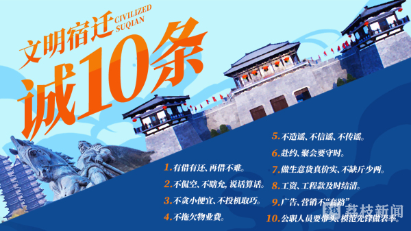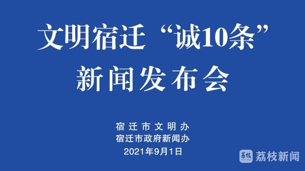 9月1日,宿迁市文明办,宿迁市政府新闻办召开新闻发布会,正式发布《文明宿迁“诚10条”》。