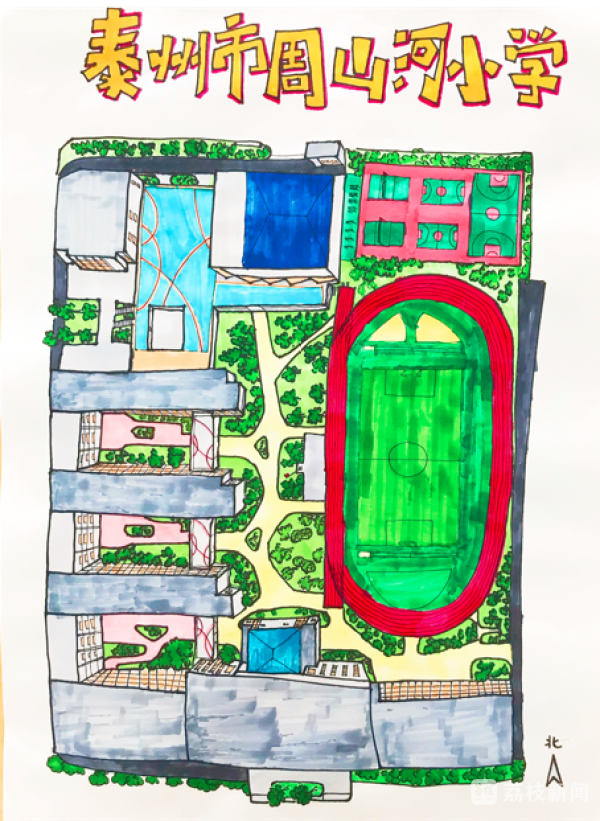 泰州市周山河小学位于周山河南岸,天德湖公园西侧,毗邻奥体公园,翠环水抱,宜学宜居,交通便利,是医药高新区(高港区)重点建设的一所高起点、高标准、功能齐全的现代化公办小学。今年也是学校首次进行招生,走进校园,靓丽的教学楼、宽敞明亮的教室、宽阔的图书馆、干净整洁的食堂,让同学们对未来充满期待。“这幅校园地图是我和小伙伴们,在老师的指导下花了半天时间合作完成的,”四年级学生刘昊源告诉记者,“希望学校可以越来越美丽,我们在这里可以自由快乐地学习。”