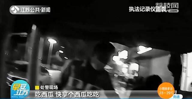 “警察叔叔给个西瓜,快点来拿个西瓜吃吃!”由于小女孩一直在哭,辅警这边正好有西瓜,就切了一个西瓜给她吃。小女孩的情绪才稳点下来。