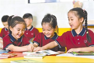 安徽省合肥市幸福路小学一年级的小学生在校园图书角阅读。吴海波摄(影像中国)