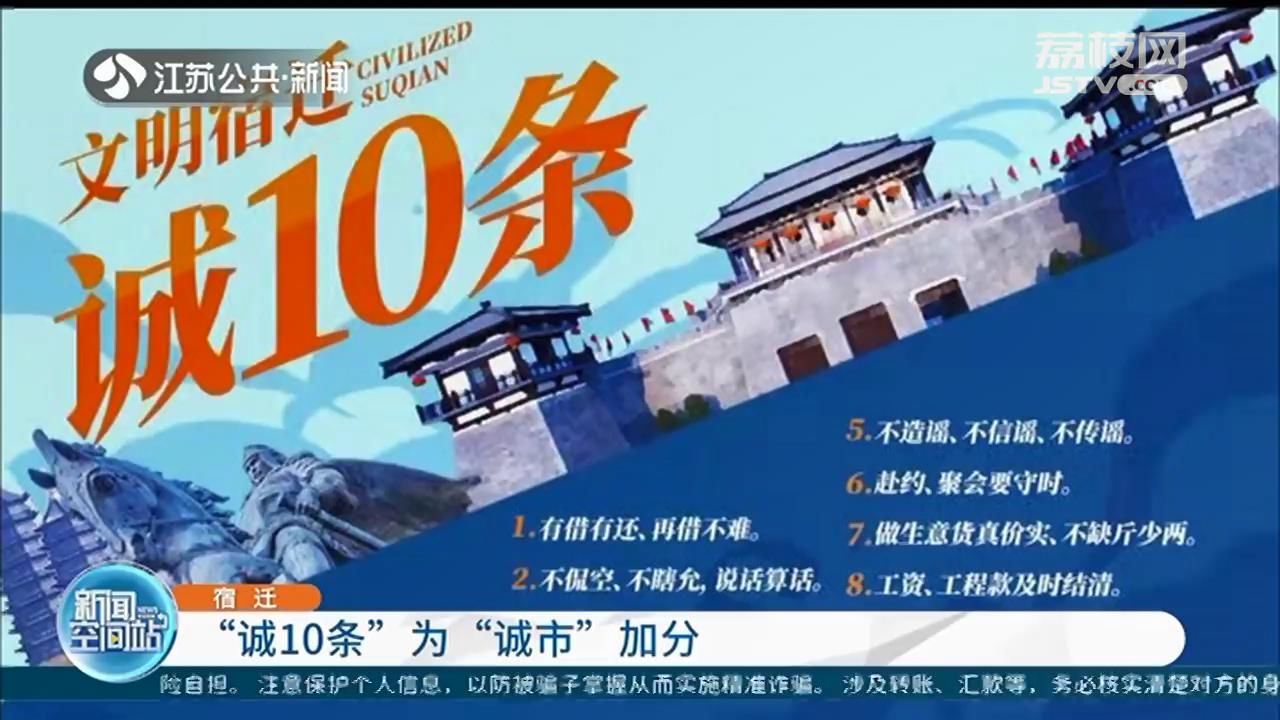 为了推动文明城市建设再上新台阶,近日,宿迁发布《文明宿迁“诚10条”》,用“诚10”为诚实守信的宿迁加分。