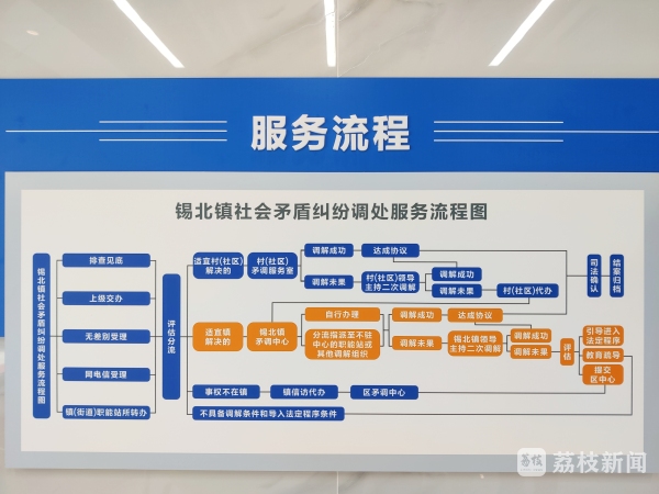 与此同时,锡北镇今年实现全域17个村级调解组织全覆盖,并在全省率先推出社会矛盾纠纷调处服务流程图。据统计,截至今年上半年,锡北镇5个专业性、行业性调解工作室、17个村级调解组织和镇调解中心共调解完成各类矛盾1300多起。