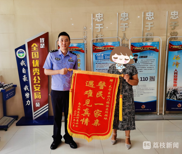 今天,记者从常州天宁警方获悉,近日,常州市民袁女士专程将一面写有“警民一家亲,遇难见真情”的锦旗,送到了水门桥派出所民警顾冰的手中,对民警的帮助表示衷心感谢。