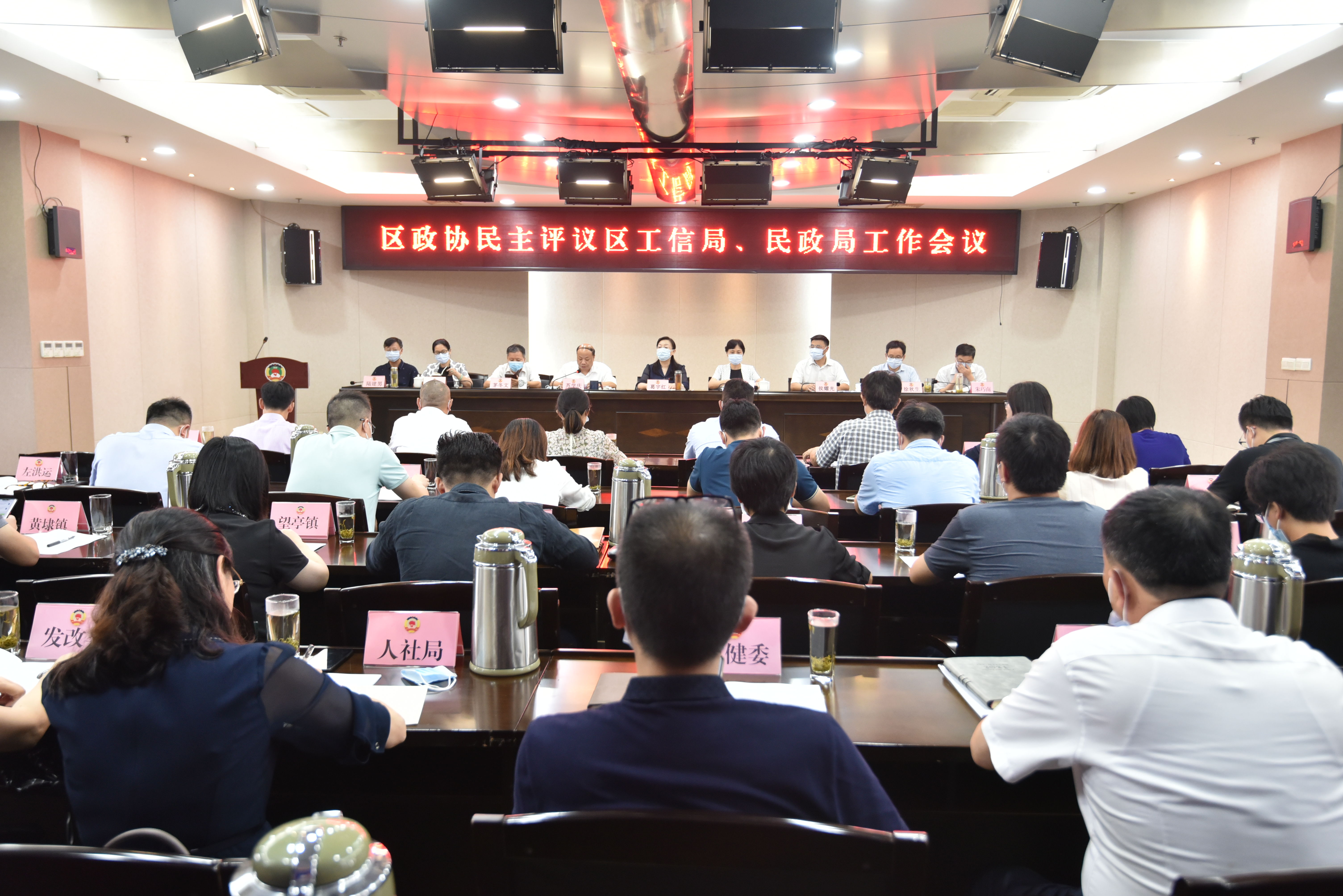 8月27日,区政协民主评议区工信局、民政局工作会议召开。区政协主席葛宇红、区政府副区长黄靖出席会议并讲话,区政协副主席、党组副书记苏学庆主持会议。