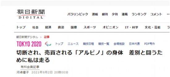 《读卖新闻》称,在非洲,白化病患者容易成为被歧视的对象,孟加抱着“给予白化病患者勇气的信念”,站在残奥会的舞台上。