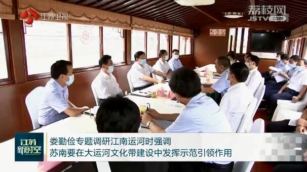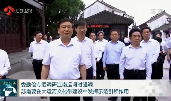 娄勤俭在调研中强调,近年来我省认真贯彻总书记关于大运河文化保护传承利用的重要指示批示精神,推动大运河文化带建设取得显著成效,其中苏南运河保护利用一直走在前列。娄勤俭指出,苏南五个主要城市的格局和发展变迁与运河有着密不可分的关系,在大运河文化带建设中地位突出、使命重要。要把大运河文化带建设放到 “争当表率、争做示范、走在前列”的重大使命中考量,推进这项传承历史、泽被后人的事业。要完整、准确、全面贯彻新发展理念,在做好保护的前提下,深入挖掘文化遗产内涵,实现创造性转化、创新性发展,真正起到保护遗产、传承文明、造福人民、创造未来的作用。要做好“文化”文章、“活态”文章、“统筹”文章、“精细”文章,打造具有世界影响力的文化符号,为展示国家形象、传播中华文明、彰显文化自信贡献更大力量。