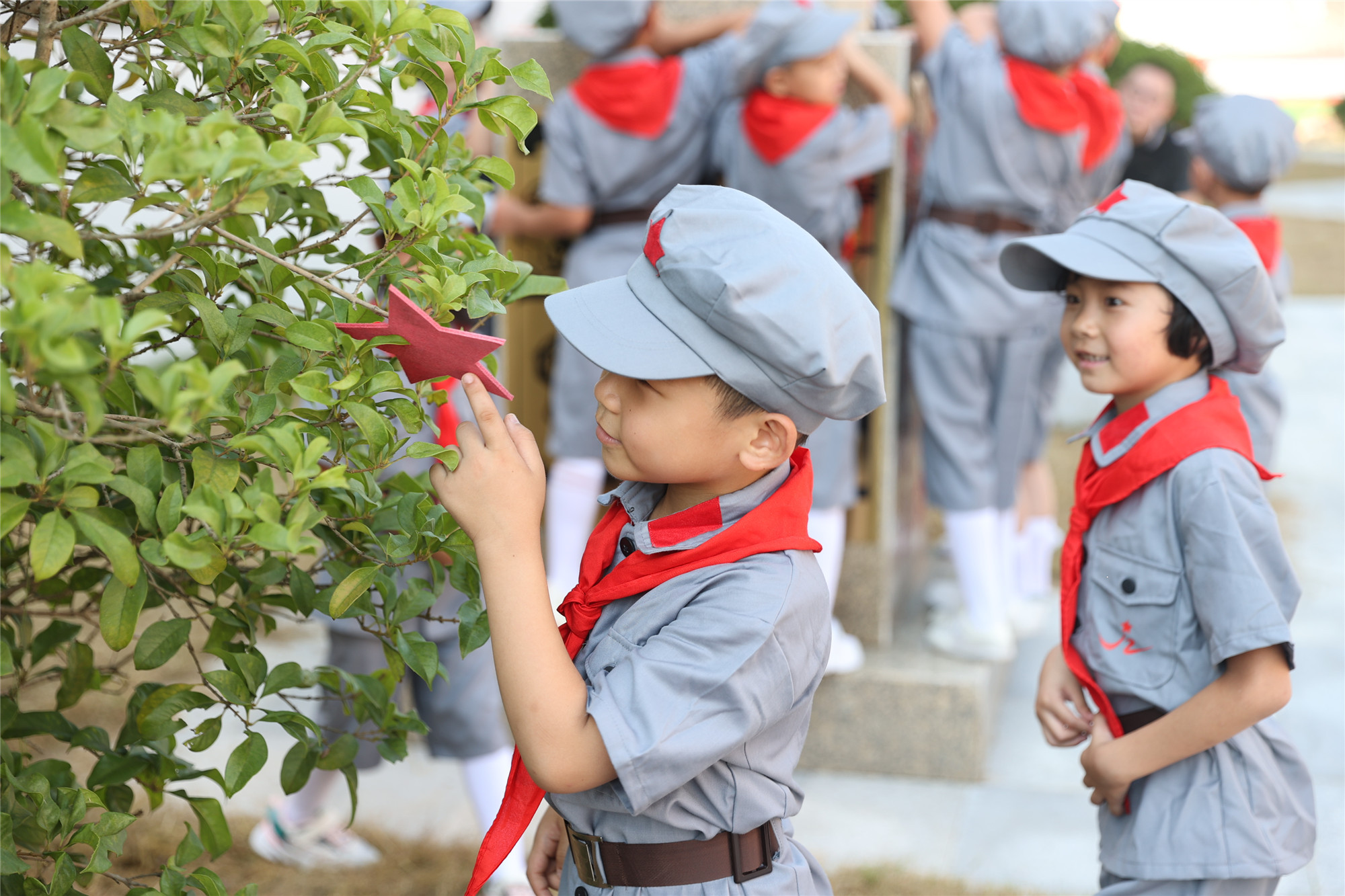 “红领巾是红旗的一角,我要向革命先辈们学习,传承红色基因,为红领巾增光添彩。”