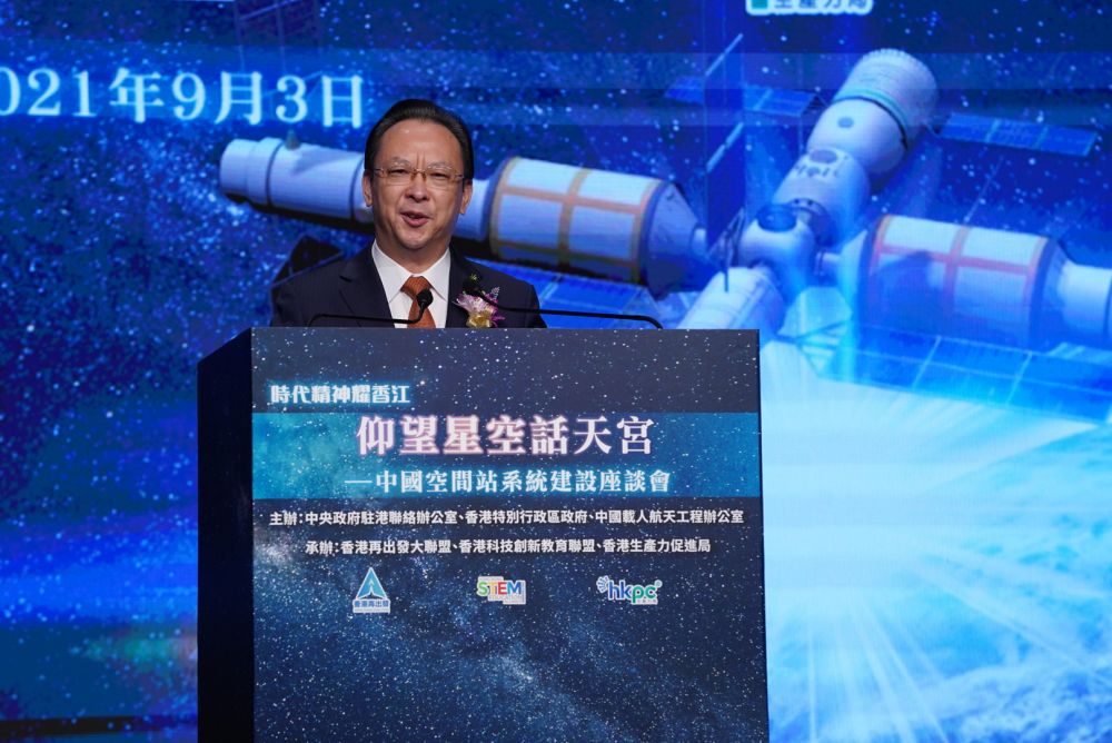 本次活动由香港中联办、香港特区政府、中国载人航天工程办公室主办。香港特区行政长官林郑月娥,香港中联办副主任谭铁牛,中国载人航天工程总设计师周建平,中国载人航天工程办公室主任郝淳,中国载人航天工程副总设计师、中国首飞航天员杨利伟,中国航天员科研训练中心总设计师、航天员系统总设计师黄伟芬,中国空间技术研究院总设计师、空间站系统总设计师杨宏分别在香港和北京会场出席活动。