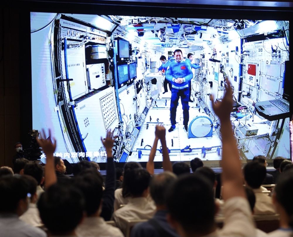 紧接着,香港青年学生代表向北京会场的航天专家和“太空出差三人组”——神舟十二号航天员聂海胜、刘伯明和汤洪波现场连线提问。北京会场航天专家就用“天宫”开展科普教育、航天员职业体验、航天员训练、空间站工作及生活等提问逐一详细解答。