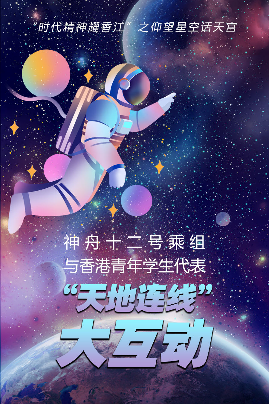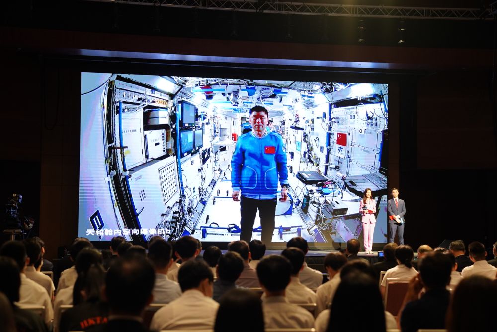 “时代精神耀香江”之仰望星空话天宫活动3日在北京和香港两地成功举办。正在天宫空间站执行任务的神舟十二号乘组与近300名香港科技工作者、教师和大中学生,进行了一场别开生面的天地连线互动。