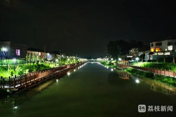 为保障群众晚间休闲锻炼的安全,裴圩镇还在河道沿线加装了路灯,夜幕降临时,灯光倒映在河里,微风吹来,犹如珍珠洒落在水面,将一干河两岸每一个景观元素都凸显出来,大大提升了一干河的夜间颜值。