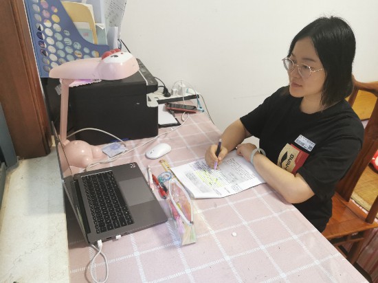 数学教师吴慧琳与丈夫是同行,儿子上高中。“我们一家人常常为了网课的技术问题一起开研讨会,然后我再将自己的经验和同事分享。” 吴慧琳说。