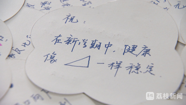 “因为三角形受力点比较牢固,所以它很坚固,老师也希望我们的身体能像三角形一样健康牢固,今年开学收到了这样新样式的卡片,就感觉挺新颖的。”苏州市彩香实验中学校一名学生说。