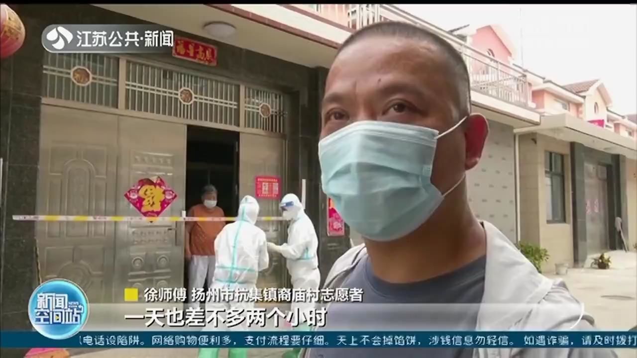 扬州市杭集镇裔庙村志愿者徐师傅说:“一天也差不多两个小时,疫情期间做些力所能及的事。”