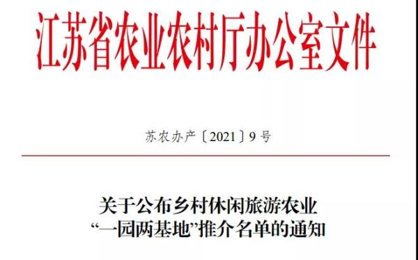 近日,江苏省农业农村厅公布了2021年江苏省乡村休闲旅游农业“一园两基地”(即主题创意农园、农耕实践基地、康美基地)推介名单。