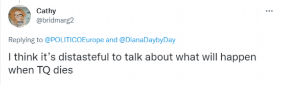 “我认为谈论女王死后会发生什么是令人厌恶的。”↓