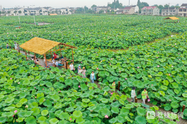 靖江市生祠镇东进村荷花节一年一度,人们赶赴东进村,流连于七彩荷塘。离七彩荷塘不远,一座普济庵坊高高矗立,让美丽东进凸显浓浓的“红色”。